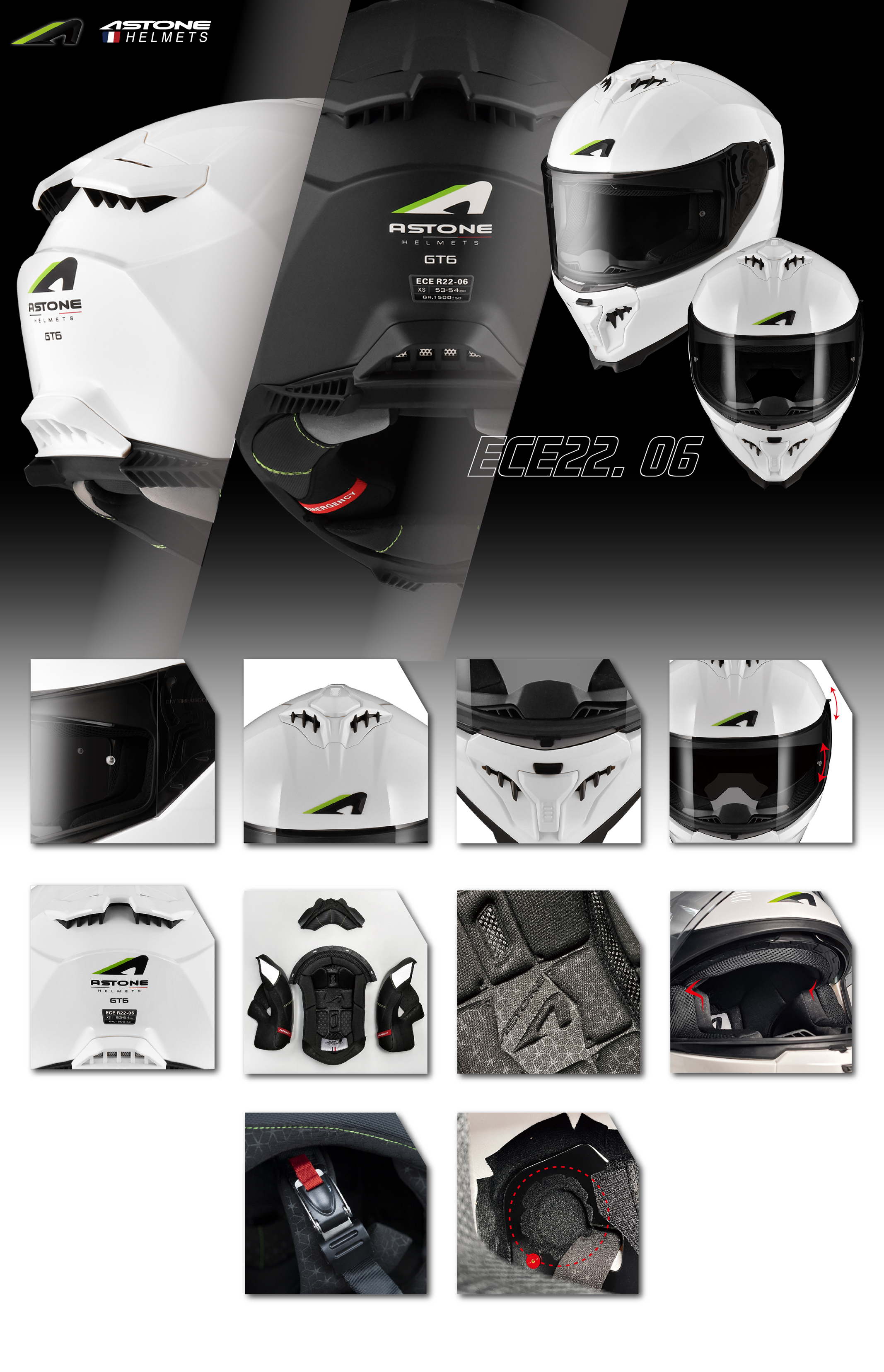 O Capacete Astone GT6 é o aliado perfeito para motociclistas que exigem o equilíbrio ideal entre segurança de ponta e conforto aerodinâmico. Projetado com casco em ABS de alta resistência, este modelo integral já atende à nova e rigorosa homologação europeia ECE 22.06, garantindo proteção superior em diversos cenários de impacto. Seu design moderno é complementado por um acabamento premium, ideal para quem busca estilo tanto em trajetos urbanos quanto em estradas.